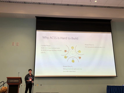 宋一凡团队提出的异步网络下构建具有线性复杂度的多方安全计算协议,不仅填补了异步与同步设置之间在通信效率上的差距,这对于构建可信赖的分布式系统和多方安全计算具有深远影响。相关2项研究成果均发表在CRYPTO 2024上。