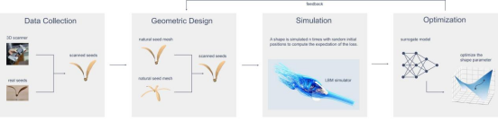 融合,拓展着科学探索的边界。近期,杜韬研究组基于人工智能与生物仿生技术,构建了一套能够自动进行翅果形态设计、飞行仿真、性能优化的计算仿生学流程,为人造翅果的形态和性能探索提供了新方案。