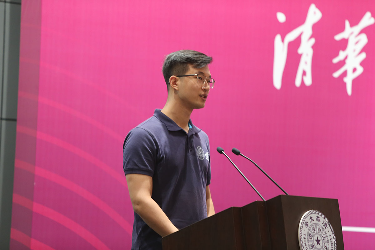 研21班胡亦行代表全体研究生新生发言。他表示,在2021年这样的历史性交汇期,一定要不负总书记重托,将个人命运和国家命运相结合,在自身奋斗的同时为社会、祖国、乃至全人类做出自己的贡献。此外,胡亦行表达了研究生同学们励志开辟新方向、做最好的研究的信念,以及希望能和大家一起享受清华园提供的丰富多彩的活动机会。