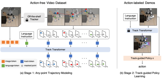 This algorithm introduces a novel approach to robot learning from videos, enabling few-shot and cross-embodiment imitation learning. It has demonstrated remarkable efficacy across more than 130 language-conditioned tasks in both simulated and real-world environments. Overall, ATM surpasses robust video pre-training benchmarks by an average of 80%. Additionally, this study showcases the successful transfer learning of manipulation skills from human videos, underscoring its effectiveness in practical applications.
