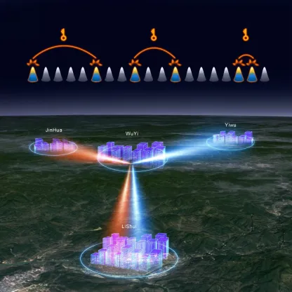 为了进一步验证MP协议在实际环境下的表现,马雄峰教授与组内博士生黄溢智与潘建伟团队合作,利用布置于浙江省金华、丽水、义乌、武义四个城市之间的实地光纤,以武义作为量子信号探测节点,构建了金华-武义-丽水、义乌-武义-丽水两条对称信道以及非对称信道量子通信链路。团队设计并发展了独立激光器之间频率差估算方案,在不同类型信道下对量子参考光光强进行参数优化以降低频率差估算错误率,同时发展了非对称信道下模式匹配量子密钥分发的有限码长分析方法,最终成功实现了对称信道下1.217 kbps以及非对称信道下3.089 kbps的安全密钥率,验证了模式匹配量子密钥分发在现场光纤环境的可行性。该结果证明了MP-QKD协议在不同光纤长度下无须考虑激光器相干长度,在现场环境下无须对两个独立激光器锁频锁相,为多样化的量子网络场景提供了可靠的解决方案,并且意味着我国中东部两个相邻城市之间可以不再需要可信中继节点,这极大增强了节点布置的灵活性和路由能力。该工作展示了模式匹配量子密钥分发在量子网络中重要的实用价值,对未来量子网络的构建与应用具有重要的意义。