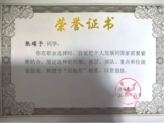 2024届博士毕业生张耀予荣获2024清华大学毕业生“启航奖”银奖。他将在毕业后加入华为鸿蒙操作系统部门工作。