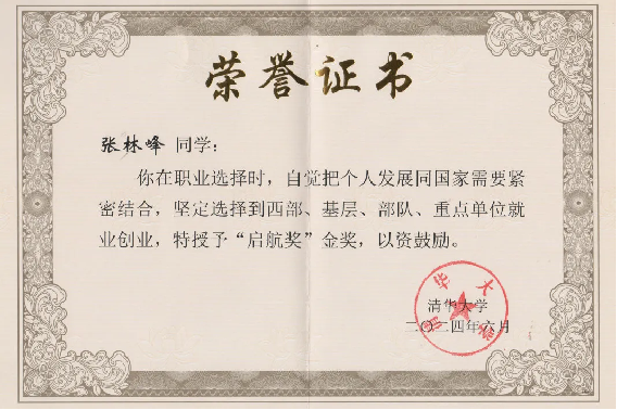 信息研究院2024届博士生张林峰、张耀予同学分别荣获清华大学毕业生“启航奖”金奖、银奖。自2006年设立以来,“启航奖”旨在表彰“到党和人民需要的地方发光发热”的优秀毕业生,积极鼓励和引导优秀毕业生前往国家重点地区、行业和领域就业创业。
