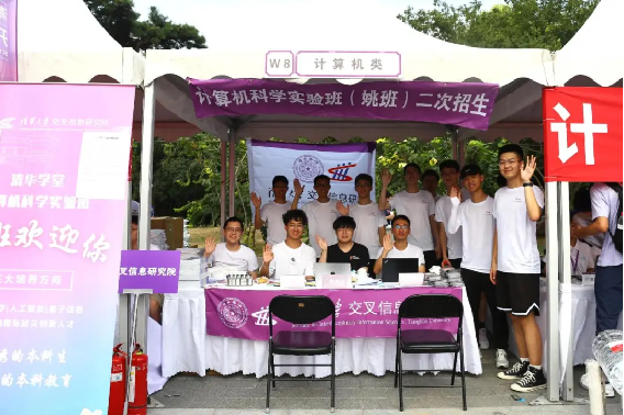 信息研究院迎来部分四字班新同学(一招)。姚班项目主任黄隆波教授、袁洋助理教授,新生班主任孙麓岩教授、段然副教授、张景昭助理教授,院办教师们、新生辅导员和迎新志愿者们来到紫荆C楼迎新点欢迎新生。
