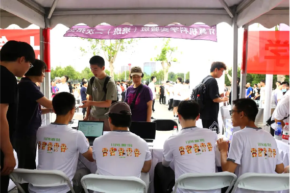 志愿者们身穿“茶小虎”院衫,向四字班新生们致以最热烈的欢迎。