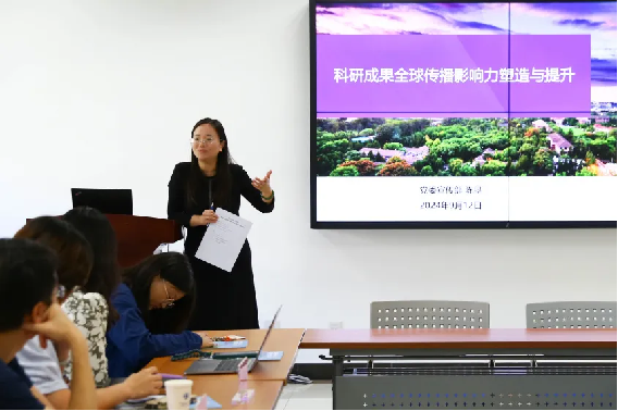 加入清华大学分学科全球传播试点计划后所取得的进展和成果。随后,陈老师以“科研成果全球传播影响力塑造与提升”为题,从全球传播的背景意义、内涵职能、工作策略三个方面分享了院校全球传播能力建设的目标和方案,并聚焦科学传播从理论到实践的实操策略。她从回顾党中央对全球传播工作的系列重要指示精神出发,介绍了清华大学全球传播工作机制,分享了若干策略和原则。其中,传播效果“三力三度”、传播译文“信达雅”,以及生动的科普传播案例等令师生受益匪浅,引发广泛共鸣。陈老师也鼓励师生充分利用清华大学提供的《创新清华》、《看见科学》、《走近科学家》、科研专刊Research Feature等全球传播品牌资源拓展学术影响力。