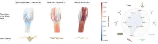 融合,拓展着科学探索的边界。近期,杜韬研究组基于人工智能与生物仿生技术,构建了一套能够自动进行翅果形态设计、飞行仿真、性能优化的计算仿生学流程,为人造翅果的形态和性能探索提供了新方案。