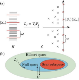 图1:将量子多体伤痕态嵌入Lindblad主方程的无耗散子空间的方案示意图