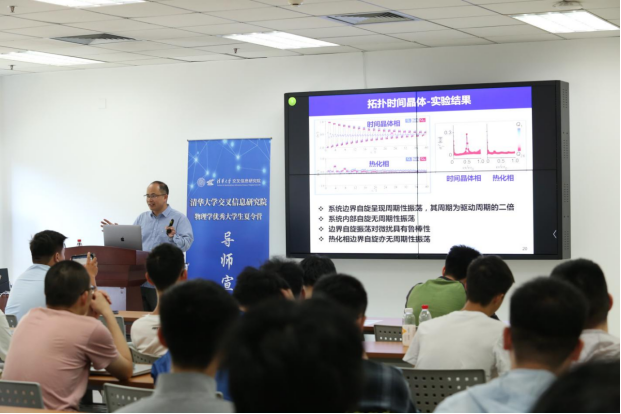 邓东灵助理教授简要介绍了量子人工智能,以及研究组在该领域的两个研究成果:首次在超导系统中实验演示量子对抗机器学习与拓扑时间晶体的全数字化量子模拟。最后,他对在人工智能场景中实现量子优越性进行了展望,并鼓励学生们加入研究组共同探索。