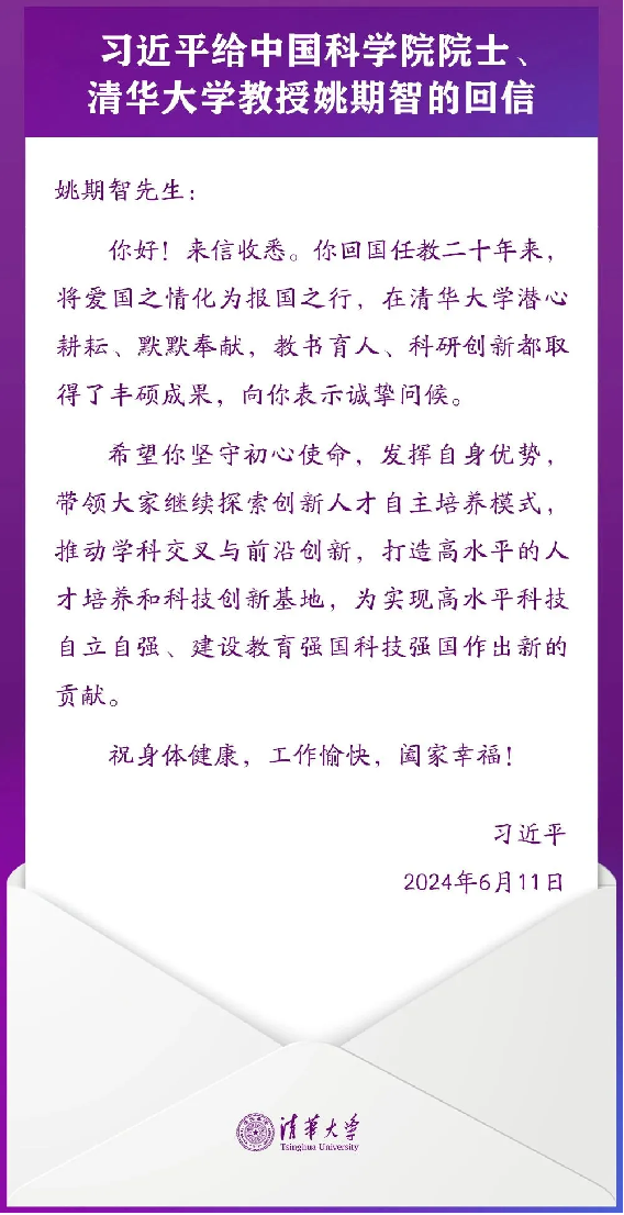 习近平总书记给姚先生的回信充分体现了国家对科技创新和人才培养的高度重视。姚先生自海外归来后在清华大学潜心教育与研究,推动了学科的飞球直播