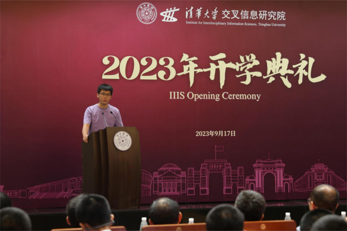 2023级本科生新生代表钱海天同学通过回顾初入清华的点滴印象,抒发了三字班新生对大学生活的憧憬和期待。他特别提及了茶园新生班会以及军训的集体氛围,并期待和大家在未来四年携手共进,成为更好的自己。