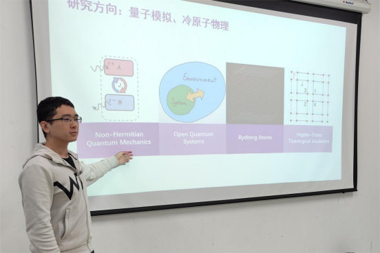 2019级直博生李楷的研究领域包括超冷原子气体、量子模拟、拓扑凝聚体物理。五年内,他共发表学术论文6篇。他建立了非厄米冷原子系统复数能谱的测量理论,并预言了无定形里德堡原子阵列中存在对称性保护的拓扑相和结构无序诱导的拓扑相变。科研之外,他曾担任过线性代数、信息物理、高等量子统计力学课程的助教,也曾参与过校内社会工作。导师徐勇副教授表示,李楷同学“具有非常扎实的理论基础,丰富的科研经验,突出的科研能力和很强的科研直觉。相信李楷会在AMO领域成为非常优秀的青年学者。”