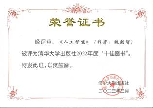 近日,由姚期智院士主编教材《人工智能》大学版教材获评清华大学出版社2022年度“十佳图书”。
