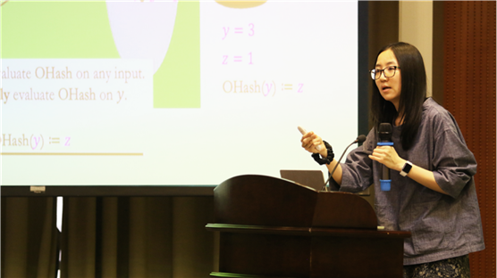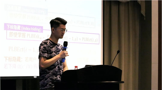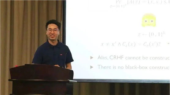 美国南加州大学博士生毛昕渝就“全域单向散列函数(Universal One-Way Hash Function, UOWHF)”分享最新研究成果,报告题为《从任意单向函数出发构造全域单向散列函数》。毛昕渝报告称,研究团队提出了两个新构造。第一个是可并行的全域单向散列函数构造,该构造首次做到了可并行,并且减少了单向函数的调用次数。第二个构造与目前效率最高的伪随机发生器的构造极其相似。但由于暂时无法证明这个构造是全域单向散列函数,毛昕渝研究团队提出了“殆全域单向散列函数(almost-UOWHF)”这一新定义,并证明了第二个构造是殆全域单向散列函数。