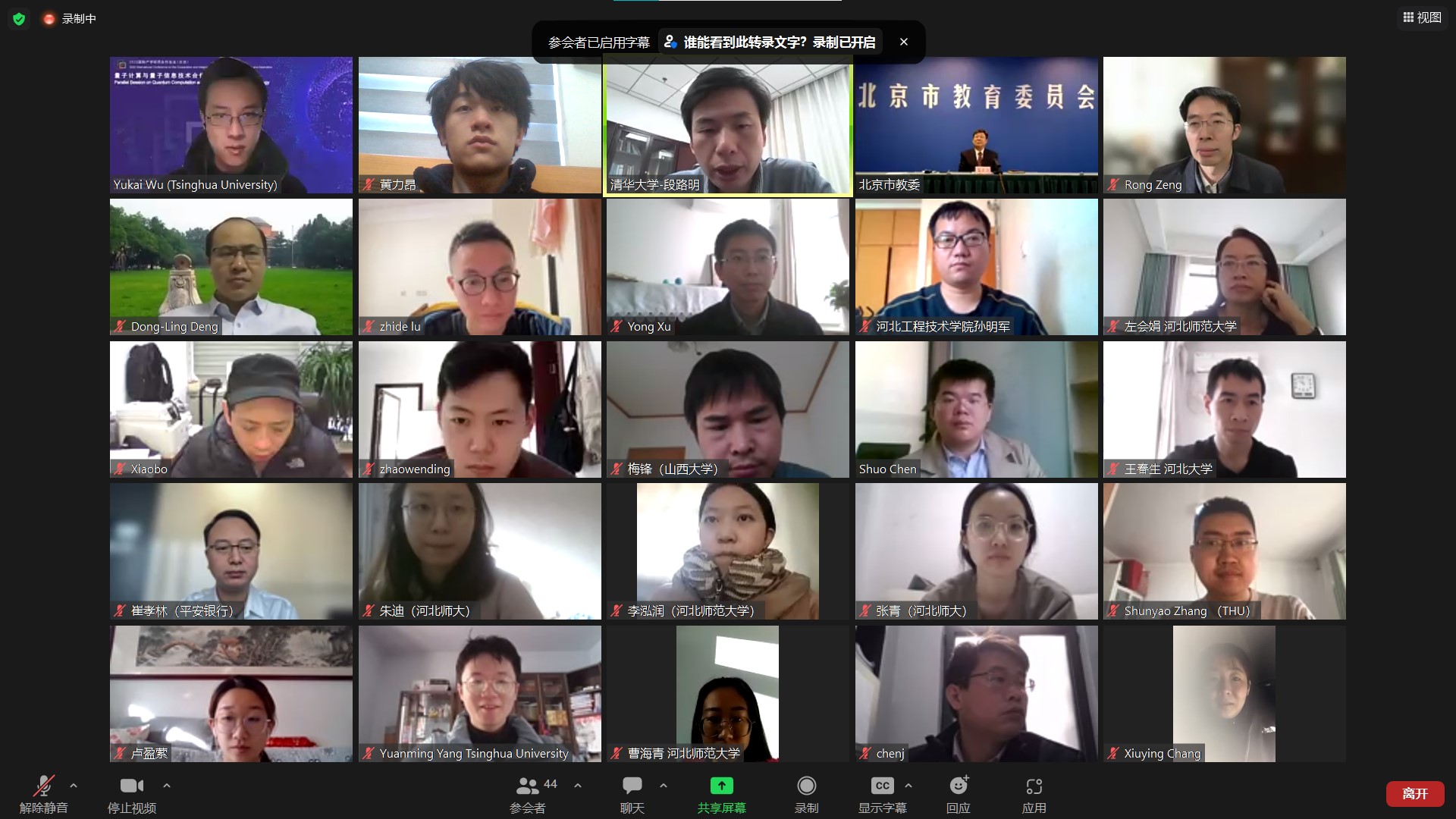 会议特邀演讲嘉宾包括美国杜克大学教授、美国科学院院士克里斯托弗·门罗(Christopher Monroe),代表因斯布鲁克大学教授、奥地利科学院院士彼得·佐勒(Peter Zoller)参会的博士后托尔斯通·扎克(Torsten Zache),中国科技大学教授朱晓波,中科院物理研究所教授范桁,日本理化学研究所、东京大学教授中村泰信(Yasunobu Nakamura)以及清华大学教授段路明等。与会专家分别介绍了各个世界领先的研究组近期在离子阱、超导电路等量子计算技术路线方面的进展,以及在量子模拟等领域的应用。特邀报告环节由飞球直播