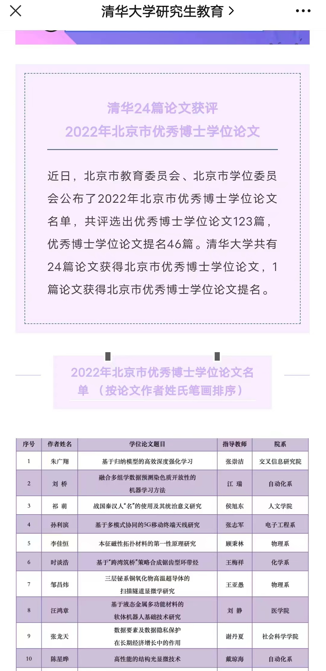 2021届博士毕业生朱广翔荣获2022年北京市优秀博士学位论文。