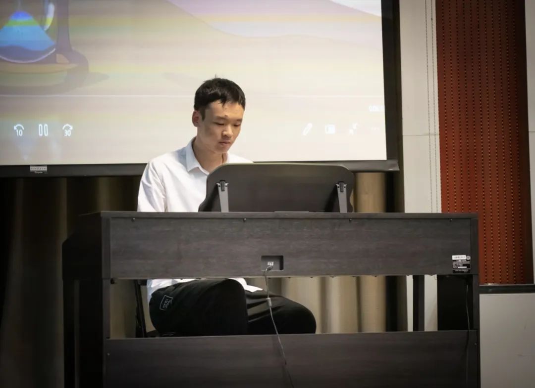 一场彗星雨,隔断了时间,但隔不断思念。来自计科01的熊诺亚倾情为观众们弹奏《你的名字》当中的曲目《火花》。熊诺亚的手指在黑白琴键上灵动地翻飞,现场流淌着优美的乐音。