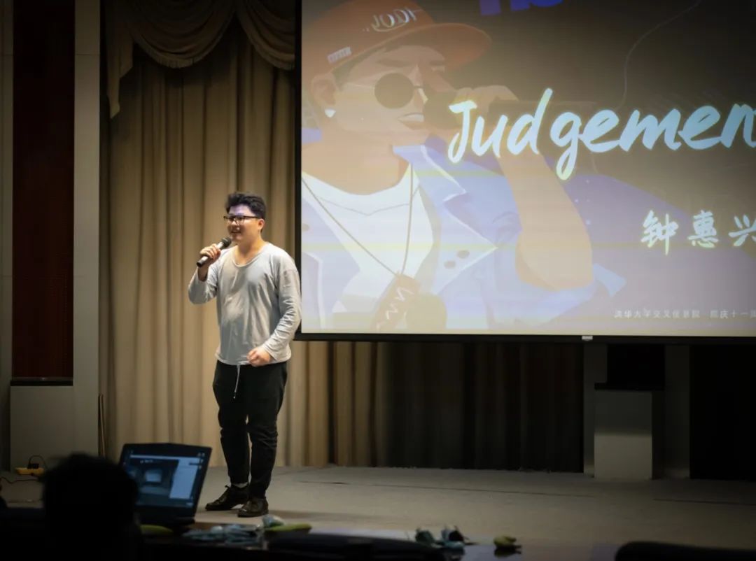 2016级校友钟惠兴为观众们带来的是泽野弘之的作品《Judgement》,此曲目以恢弘的旋律推动情绪,用紧张的鼓点把听众带入刀光剑影之中。钟惠兴的演绎也十分出彩,歌曲的后半部分对气息的要求很高,钟惠兴校友选择此曲更是勇气可嘉。