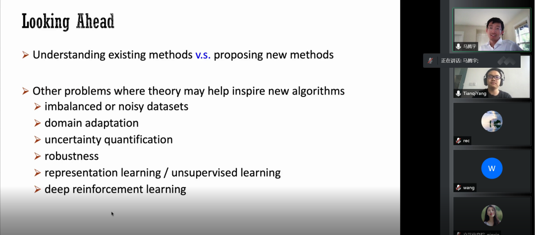 2012届姚班校友、斯坦福大学助理教授马腾宇在24日的校友论坛上,以线上方式为大家带来了深度学习理论的最新进展。他讲到,深度学习经过数十年的发展,已经形成了许多成果卓著的模型,但也有着噪声数据集、鲁棒性、不确定性量化等种种问题等待解决。也正因此,理论计算机学家们在完善现有方法的基础上,不断提出新的模型。