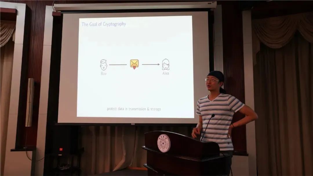 2014届姚班校友、北京大学助理教授刘天任向大家介绍了密码学在当前场景需求下的最新进展。随着网络的不断发展,人们的交流形式从人与人之间的互相交流更多地转变成不同的人与若干个大型网页的交流。在此基础上,密码学家们提出了信息论密码学,相比传统密码学,其没有计算复杂性假设,且能够实现更高的效率。