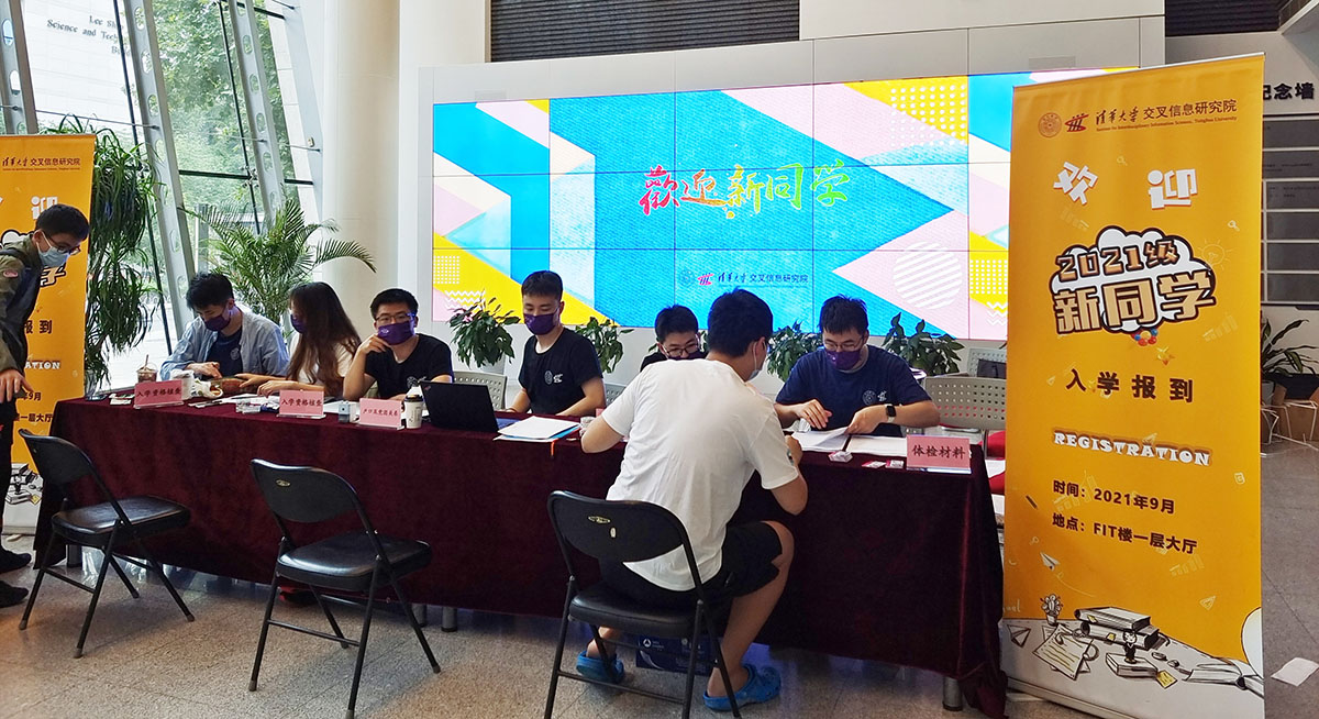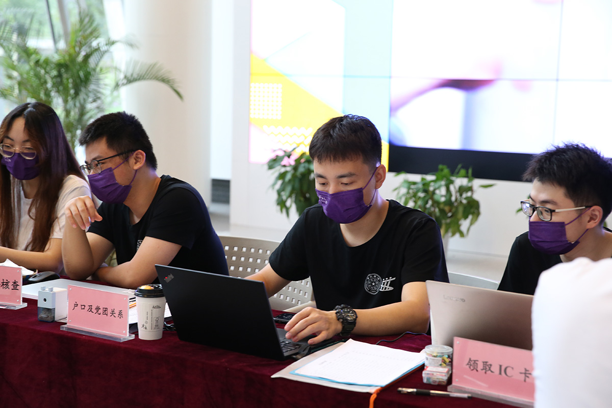 迎新点设在FIT楼一层大厅。为方便新同学办理入学手续,研究生教务老师和志愿者们设立了“一站式迎新点”,从材料审核、入学登记到党组织关系转移,再到细致详实的新生手册,一点一滴都承载着对新生的细心关怀。
