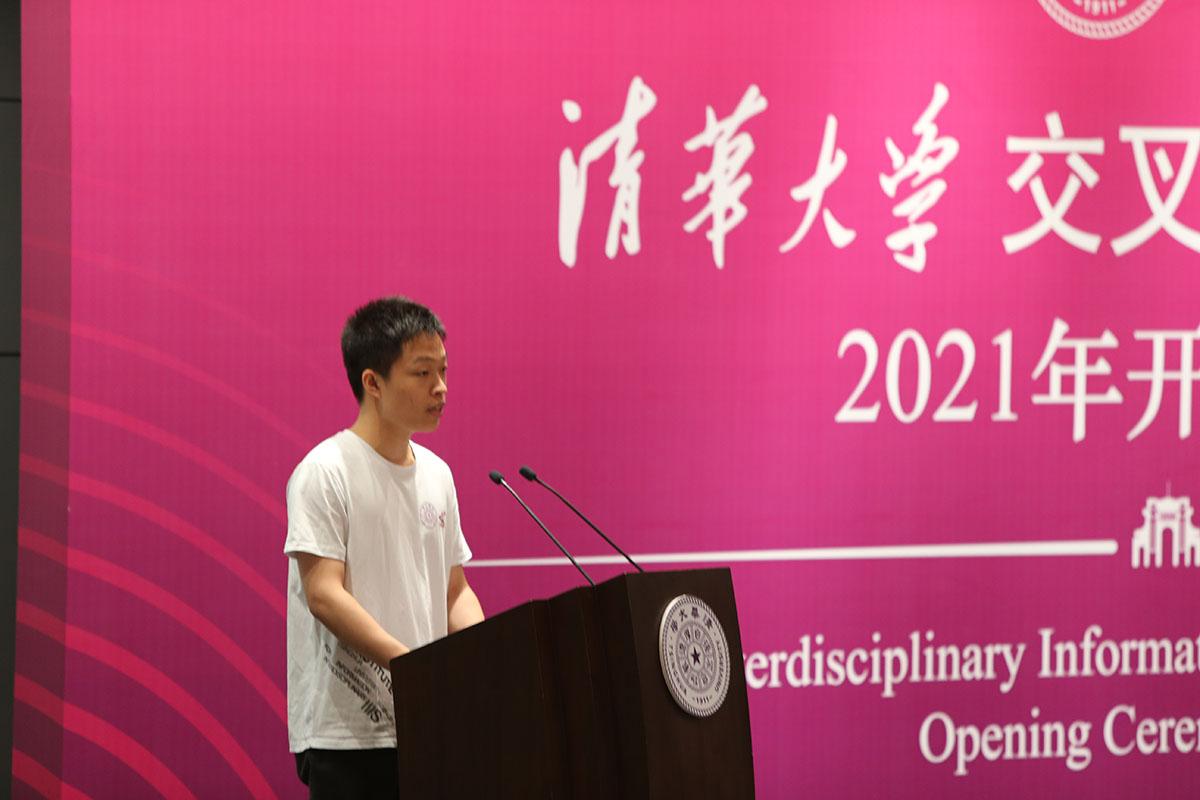 研21班胡亦行代表全体研究生新生发言。他表示,在2021年这样的历史性交汇期,一定要不负总书记重托,将个人命运和国家命运相结合,在自身奋斗的同时为社会、祖国、乃至全人类做出自己的贡献。此外,胡亦行表达了研究生同学们励志开辟新方向、做最好的研究的信念,以及希望能和大家一起享受清华园提供的丰富多彩的活动机会。