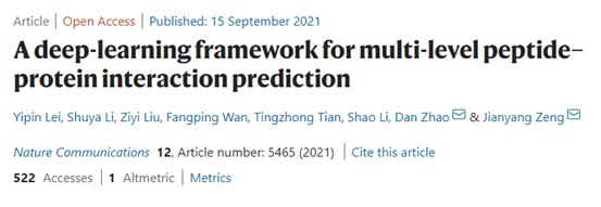 信息研究院曾坚阳课题组成功开发了一个基于序列的多尺度预测多肽和蛋白质相互作用的深度学习模型。该研究为多肽和蛋白质相互作用的机制提供了一个高效的预测框架,可以在为多肽药物预测结合靶点的同时,识别多肽序列上的结合位点。相关成果《一个多层次多肽-蛋白相互作用预测的深度学习框架》(A deep-learning framework for multi-level peptide–protein interaction prediction)于9月15日在《自然-通讯》(Nature Communications)上发表。