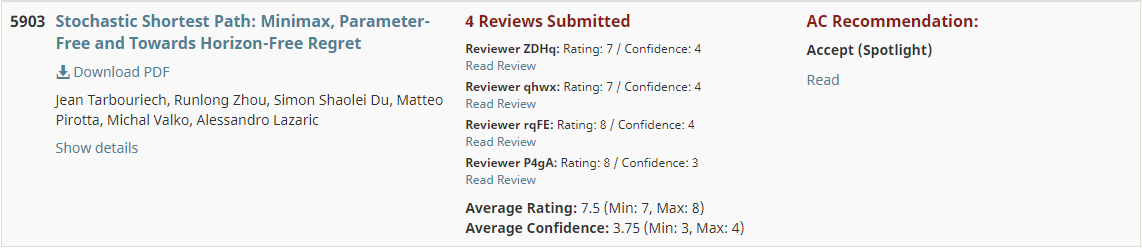 2018级姚班本科生,大三学年加入华盛顿大学Simon S. Du(杜少雷)组进行科研。该论文为科研期间的研究成果,共同一作为Jean Tarbouriech。