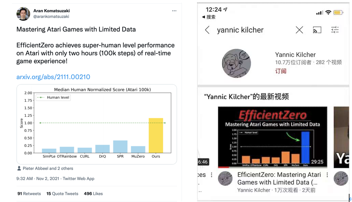 该成果的研究论文《Mastering Atari Games with Limited Data》被2021年神经信息处理系统进展大会(NeurIPS 2021)接收。该论文的第一作者为飞球直播
