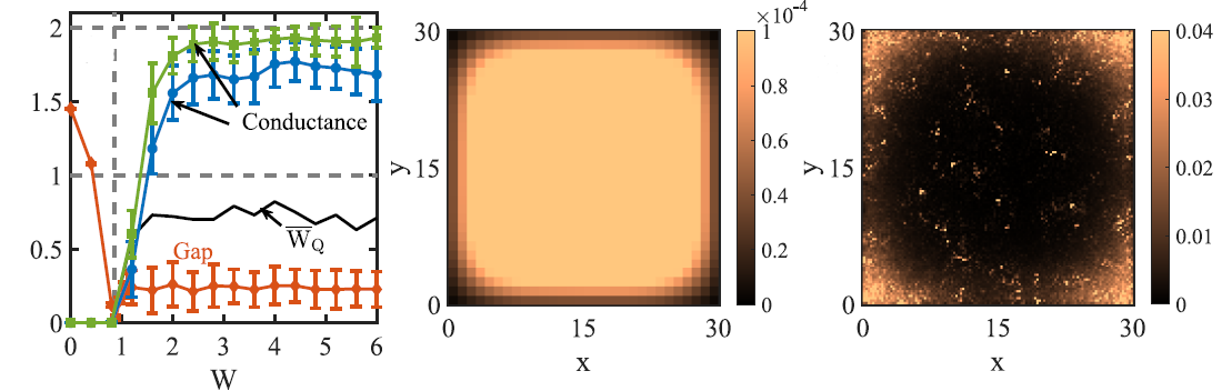 在此项工作中,研究人员发现三维无定形体系中可以存在二阶拓扑绝缘体,并且结构无序可以诱导出二阶拓扑绝缘体。这意味着在某些条件下无定形系统相比于晶格系统更容易出现二阶拓扑绝缘体。具体而言,研究人员计算了三维随机点阵的二端电导,发现在一个参数区间内,平均电导量子化到2e² / h,表明该三维体系的棱上存在无能隙的边界态。另外,研究人员发现这种绝缘体由四极矩的绕数保护,因此不需要晶格对称性。研究人员还发现在一个参数范围内,在平庸晶格体系中加入格点位置的随机偏移会引起二端电导从0到2e² / h 的跃变。另外,随着结构无序的增加,局域态密度表明链边界态的出现。以上证据表明结构无序可以诱导出二阶拓扑绝缘体。最后,研究人员考虑时间反演对称性体系,提出两种新的拓扑不变量在实空间刻画二阶拓扑绝缘体的性质。具体计算也表明二阶拓扑绝缘体也可以存在于三维具有时间反演对称性的无定形系统中。此项工作表明高阶拓扑相可能在无定形体系中广泛存在,对于进一步理解无序、对称性和拓扑的关系具有重要意义。