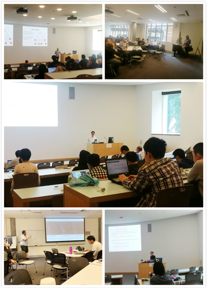 在为期三天的讲座中,应明生教授从文法设计的角度对量子程序的设计进行了解说。Michael Bremner教授讲授了量子超越性以及对应的理论问题。Troy Lee副教授讲解了量子算法以及量子复杂性相关的内容。Simon Devitt则从量子模拟的角度,介绍了量子电路的编程实现。段路明教授介绍了量子机器学习的一些基本概念和常见模型,并在理论上分析了模型的模拟能力。段然助理教授介绍了由Coppersmith等人提出的矩阵乘法算法。