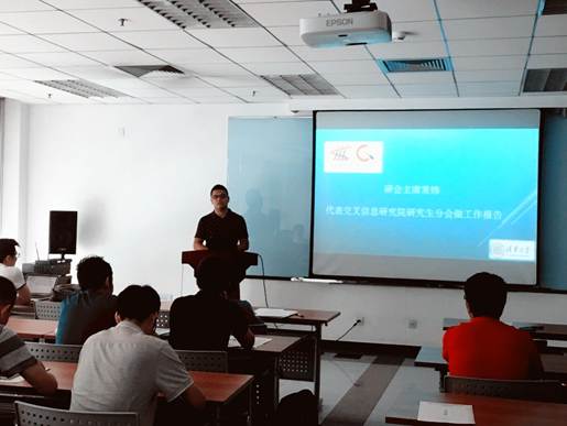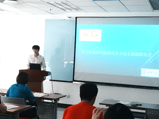 第四届研分会主席常炜代表上一届研分会做工作报告。他在会上细数了在2015和2016两年期间我院研分会的特色活动,包括一二九大合唱、良师益友评选、博士生论坛等,同时为改善院内研究生生活做了很多贡献。