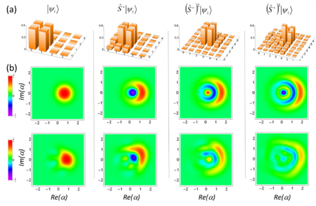传统算术操作具备多重优点,能够产生确定的非经典态和非高斯态,并且能够提供有效的量子态工程方案。金奇奂实验组的新方案则可以进一步应用到腔量子电动力学、光力学等更多量子光学装备上。该实验项目同时还指出,声子态中的非高斯信息可以通过声子-光子耦合转移到光子态。