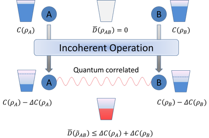 图注:量子相干性到量子失谐的转换。量子失谐的产生量不得大于子系统量子相干性的总消耗量。