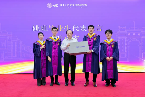 2025届姚班毕业生代表、清华特等奖学金得主叶卓睿发言。他感到,四年的锤炼已使同学们成长为独当一面的青年研究者。如今即将融入姚班强大的校友网络,成为其中不可或缺的一环,未来需传承并拓展这份联结。他与同学们共勉,未来在科技前沿书写精彩篇章,用智慧和力量改变世界,成为“育栋梁之才,创科技辉煌”的践行者。