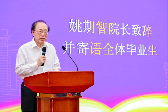 毕业班导师代表张焕晨助理教授则为毕业生们准备了三个人生锦囊:意义、格局和坚持。张老师勉励同学们在浮躁的学术环境中,不要满足于“套路化”的成功,而应有“为天地立心,为生民立命,为往圣继绝学,为万世开太平”为格局。他强调,才华决定速度,坚持决定距离,并以姚先生二十年的坚持为例,鼓励同学们怀有超越世俗的信仰,经得起挫折,坐得住冷板凳。最后,他祝愿大家怀着爱心,将人生的意义置于“以天下为己任”的格局中,并付诸一生的坚守。