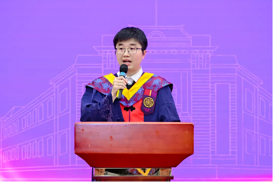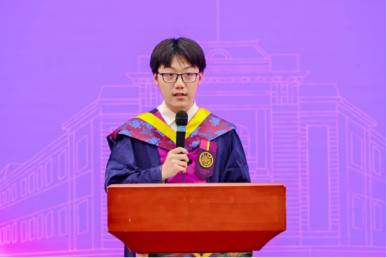 2025届计算机学科研究生毕业生代表叶葳蕤发言。他感到,身处技术巨变的时代,新一代技术探索者必须“拥抱不确定性”,并坚守“内容永远大于形式”的原则。他鼓励大家敢于做热爱且擅长的事,创造被认可的价值,并呼吁同学们在时代的洪流中,以不息为体,以日新为道,以热爱之事笃行,做一名清醒、坚定、勇于探索的时代冲浪者。