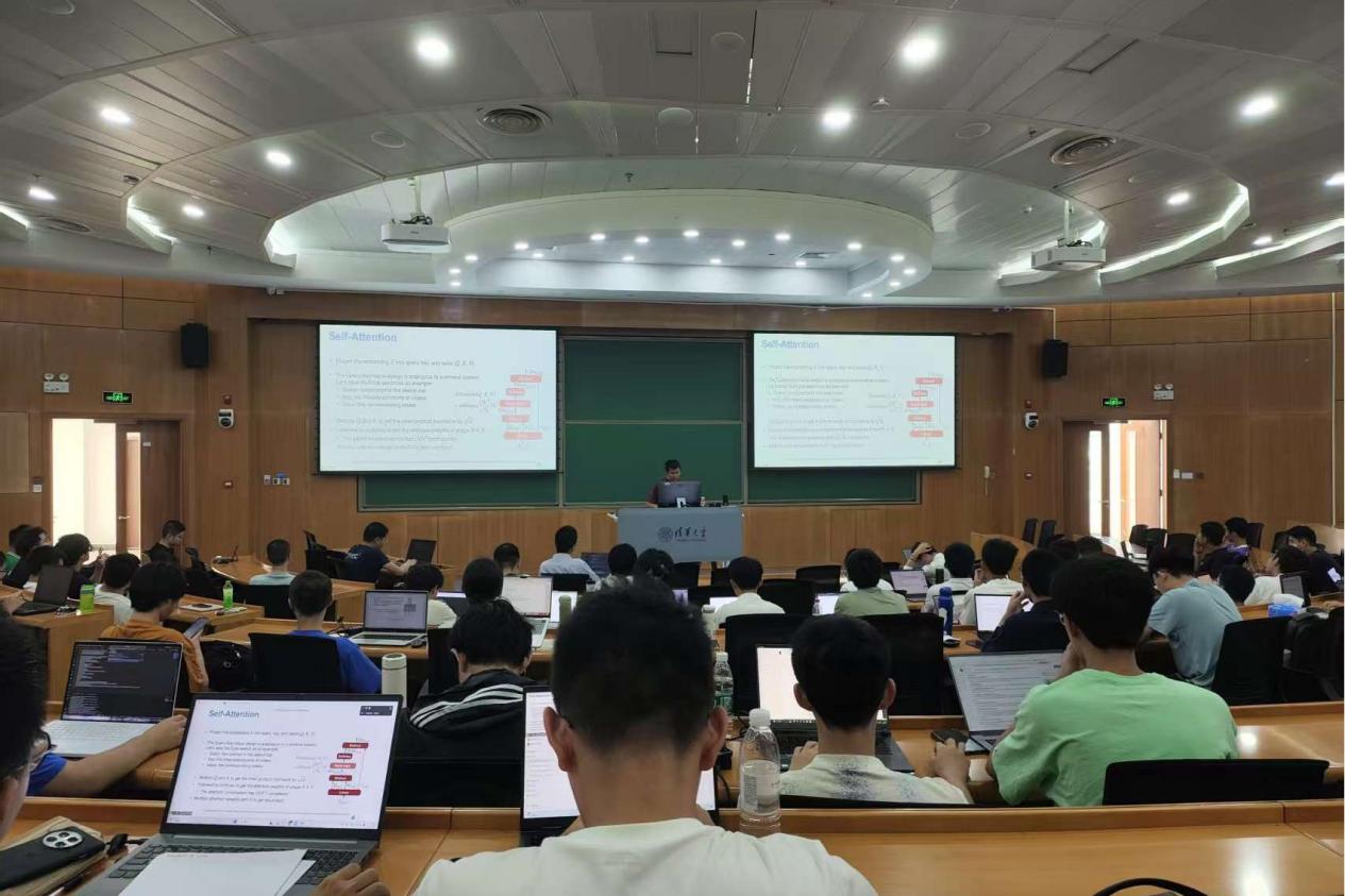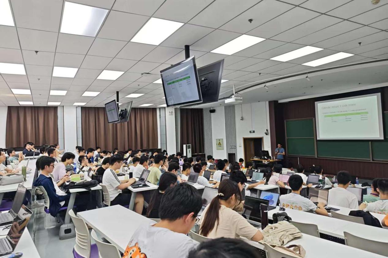 副教授袁洋和马恺声分别讲授《类型安全的前后端系统实践》与《AI+X计算加速:从算法开发到实际部署》课程,讲解大系统构建的核心要素及模型部署的并行策略,为同学们带来了学术盛宴。