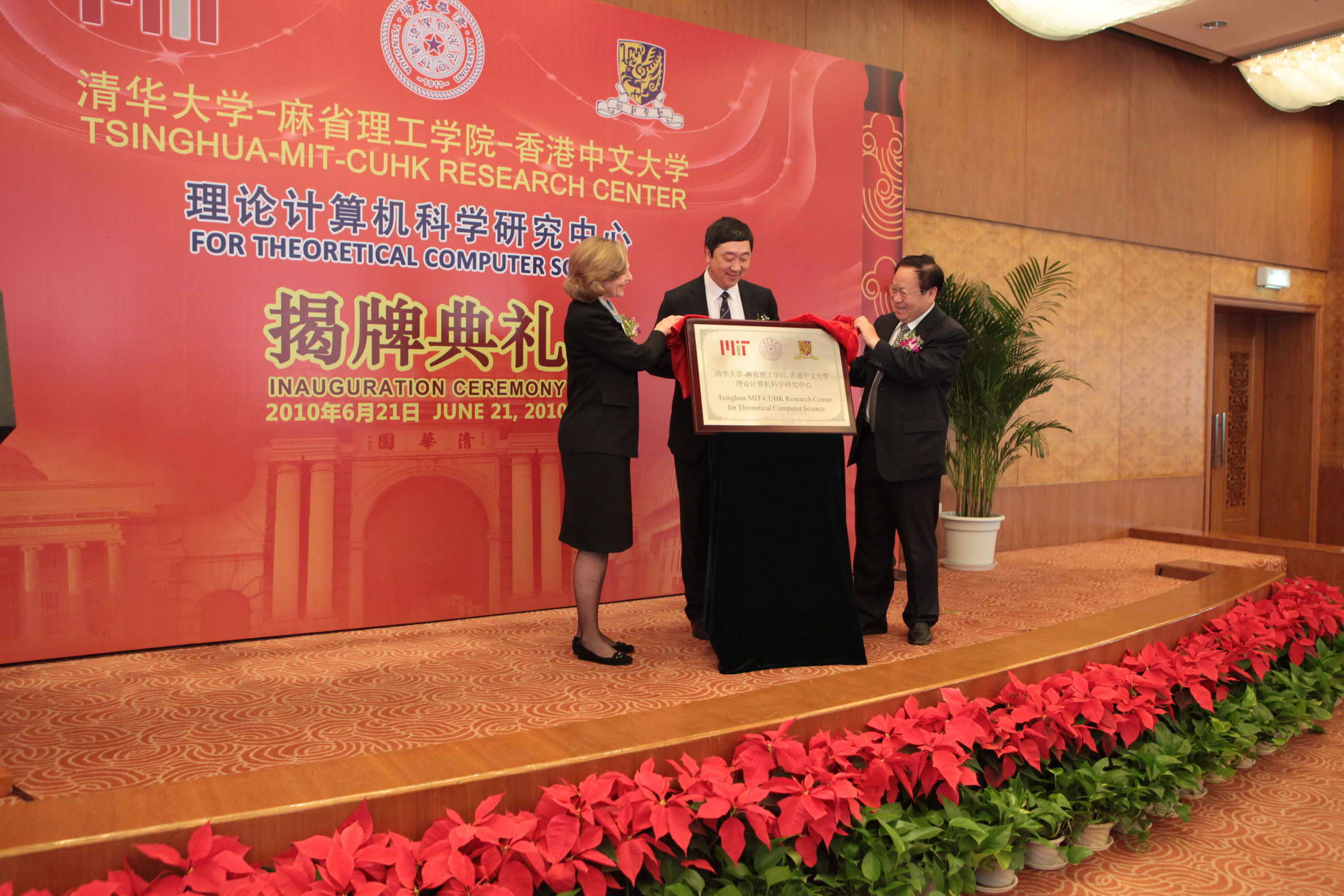 清華大學-麻省理工學院-香港中文大學理論計算機科學研究中心(中心)今天(6月21日)在清華大學舉行揭牌典禮,標誌全球理論計算機科學研究踏進了嶄新里程。國家教育部陳希副部長聯同三所院校的校長主持今天的揭牌典禮,分別為香港中文大學(中大)候任校長沈祖堯教授、清華大學顧秉林校長,以及麻省理工學院Susan Hockfield校長。這是中大與美國及國內頂尖學府——麻省理工學院及清華大學共同合作成立的首個聯合研究中心,亦是麻省理工學院首次與香港院校合作成立聯合研究中心,對匯聚中西頂尖科研人才、促進計算機科學的研究有深遠影響。